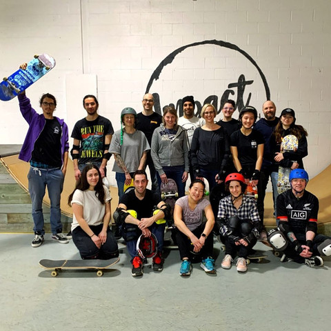 Here’s our current adult group, and as usual, they’re progressing so quickly! It’s seriously inspiring to see these folks take on something completely new (and kind of terrifying), and give it their all. They learn about riding a board, as well as what it means to be part of a version of skateboard culture that is for EVERYONE.